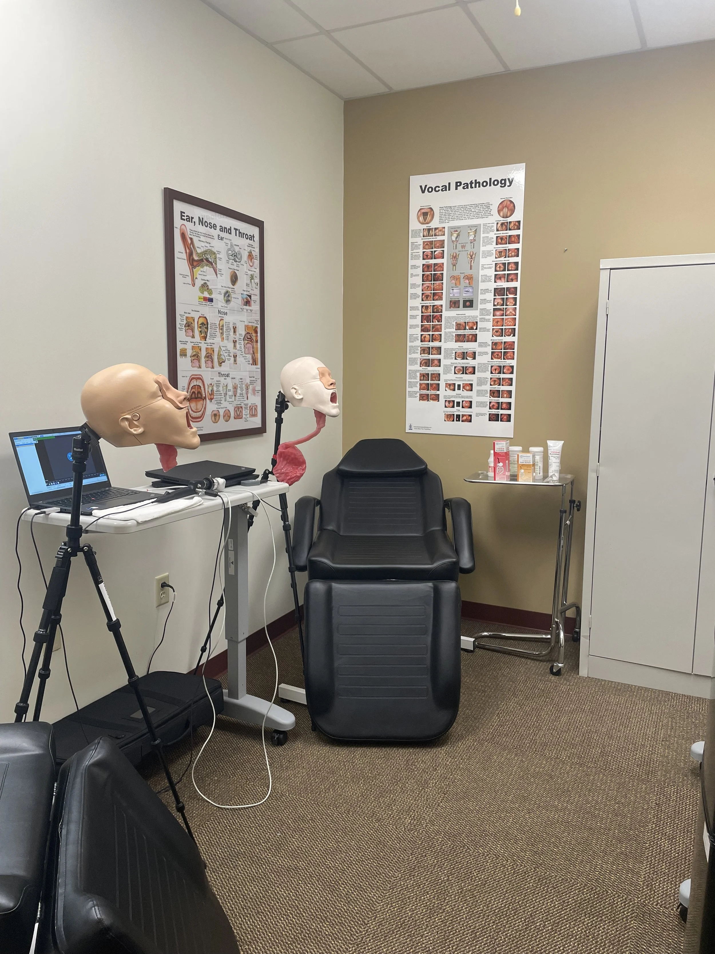 The MUSE Lab also offers monthly training clinics in collaboration with an ENT physician for practice in both rigid and flexible videostroboscopy, in addition to fiberoptic endoscopic evaluation of swallowing (FEES).